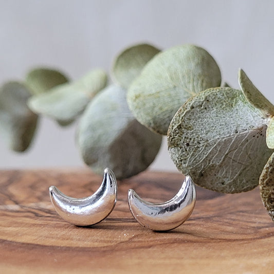 Tiny Silver Plated Moon Studs