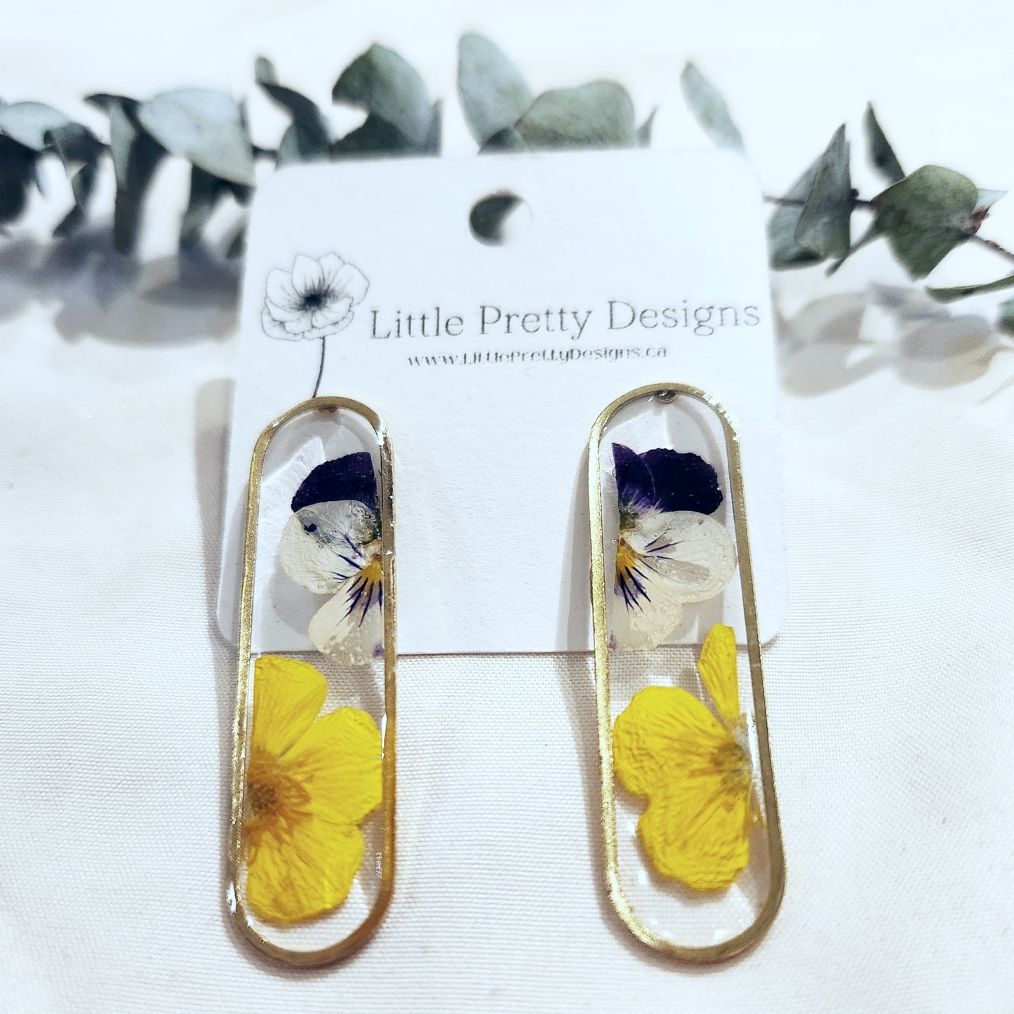 Drop Oval Floral Stud Earrings