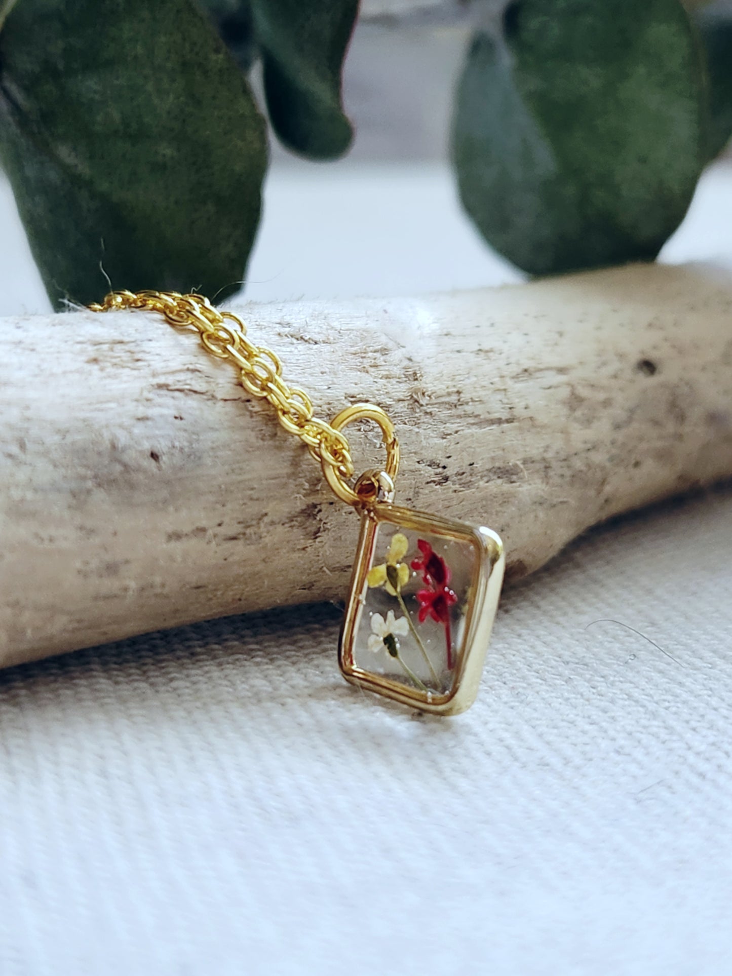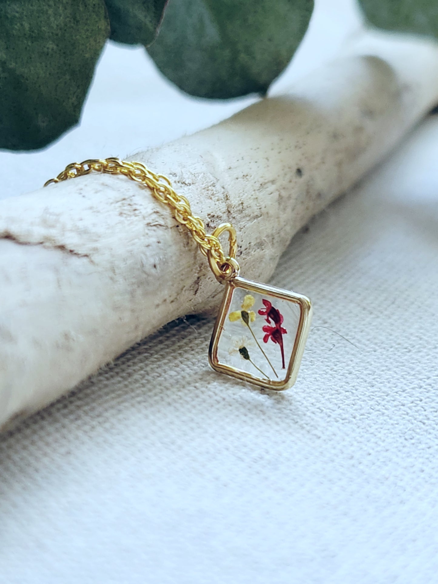 Introducing our Framed Floral Necklace – a harmonious blend of nature and elegance. Crafted with real hand-pressed flowers beautifully framed.