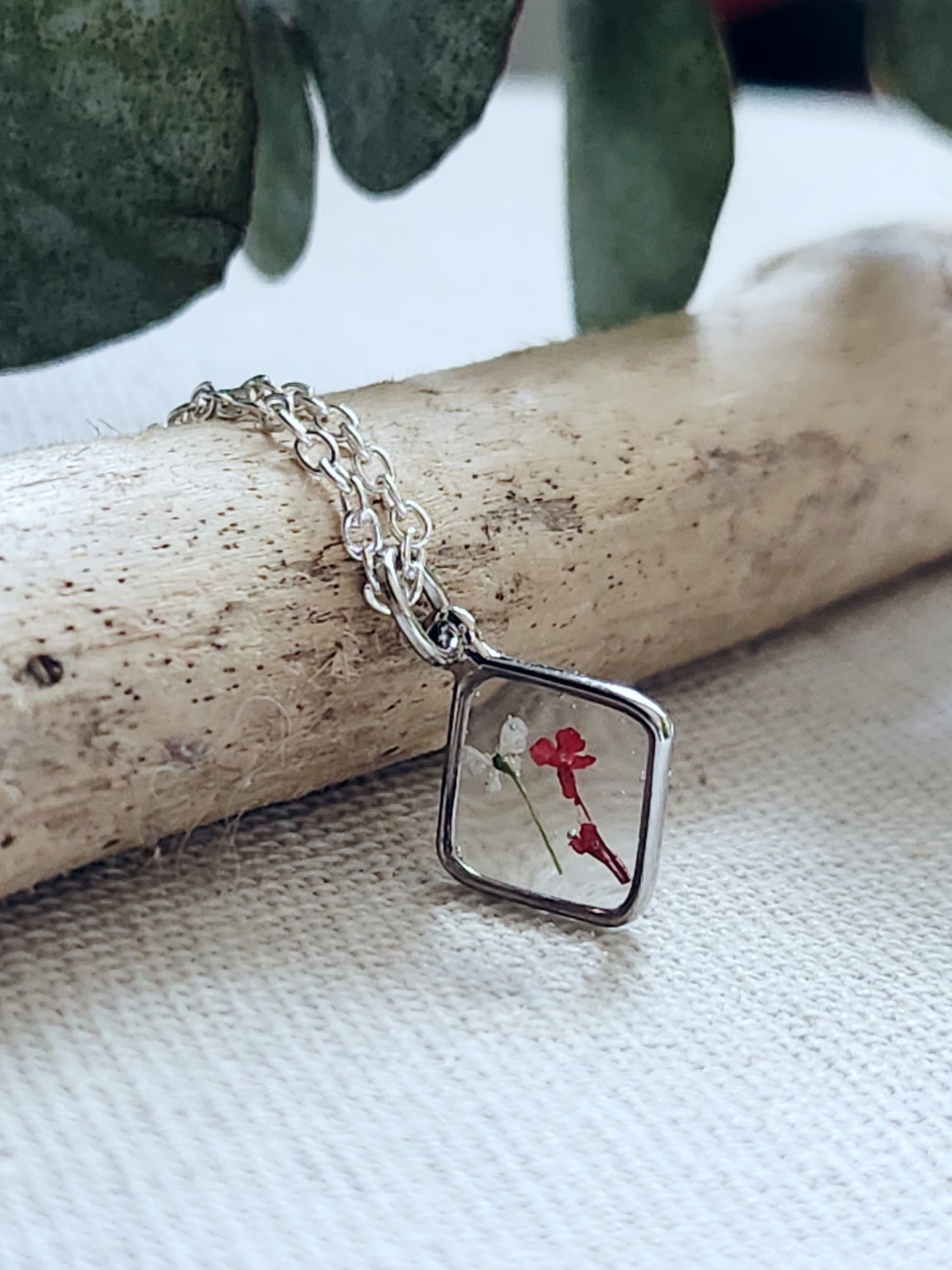 Introducing our Framed Floral Necklace – a harmonious blend of nature and elegance. Crafted with real hand-pressed flowers beautifully framed.