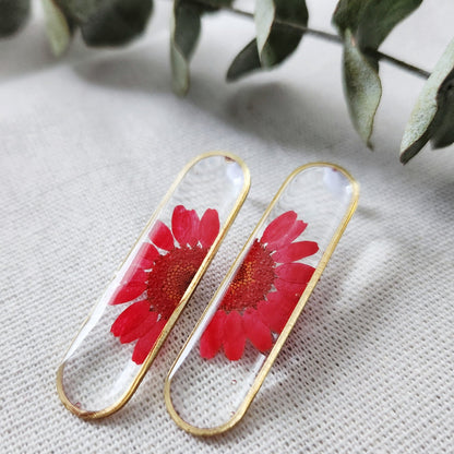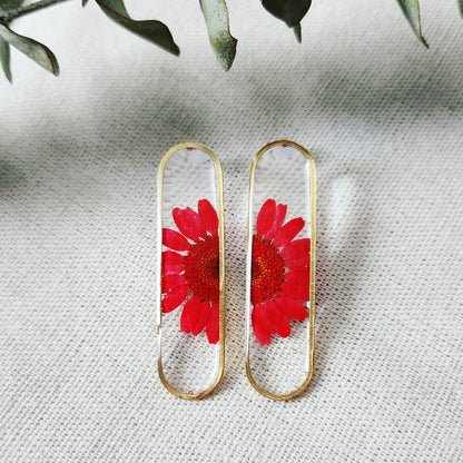 Drop Oval Floral Stud Earrings