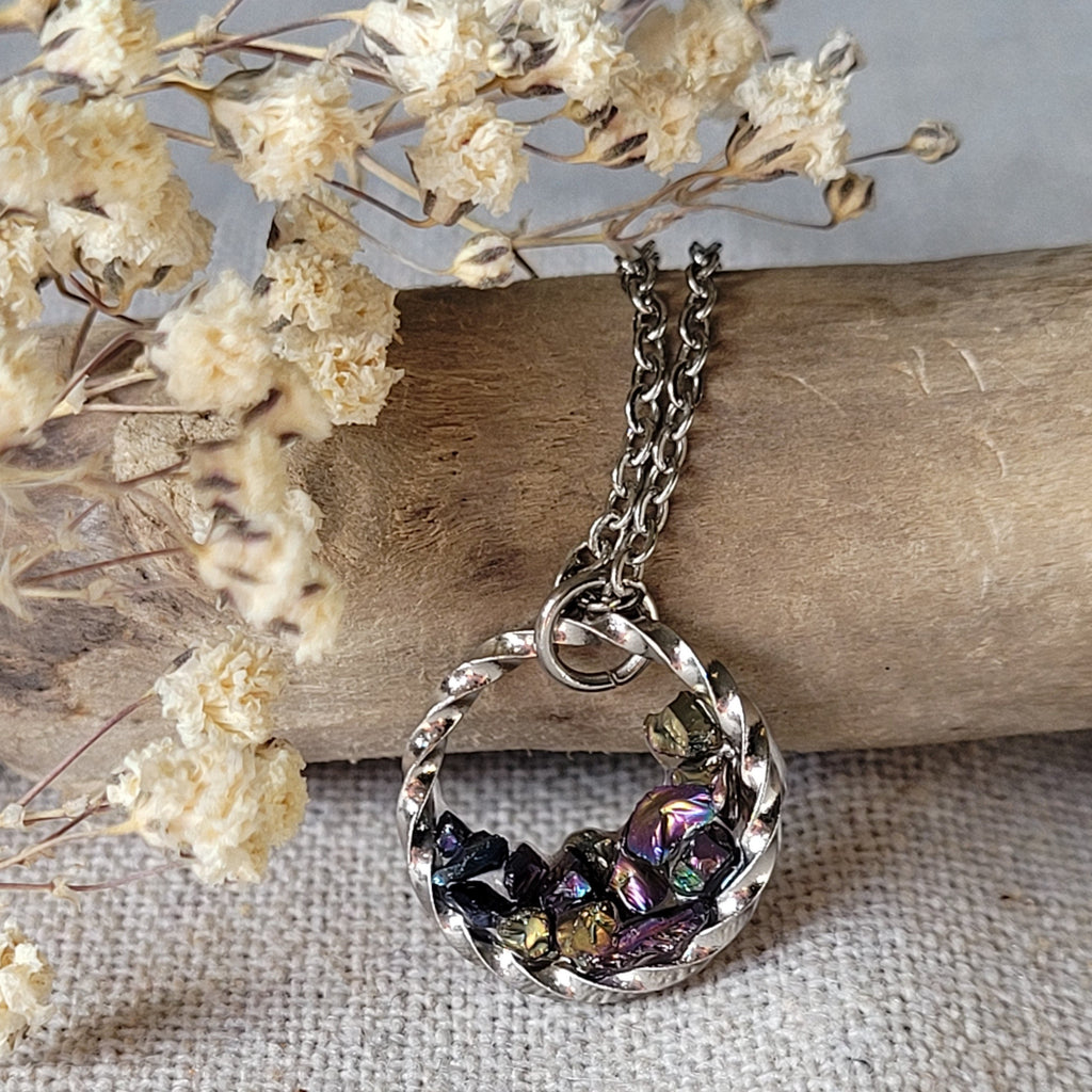 These small unique druzy inspired necklaces are created using real crushed glass chips. These tiny pieces of glass catch the light from various angles causing them to look color changing. They are truly beautiful and sure to please any jewelry lover on your list.