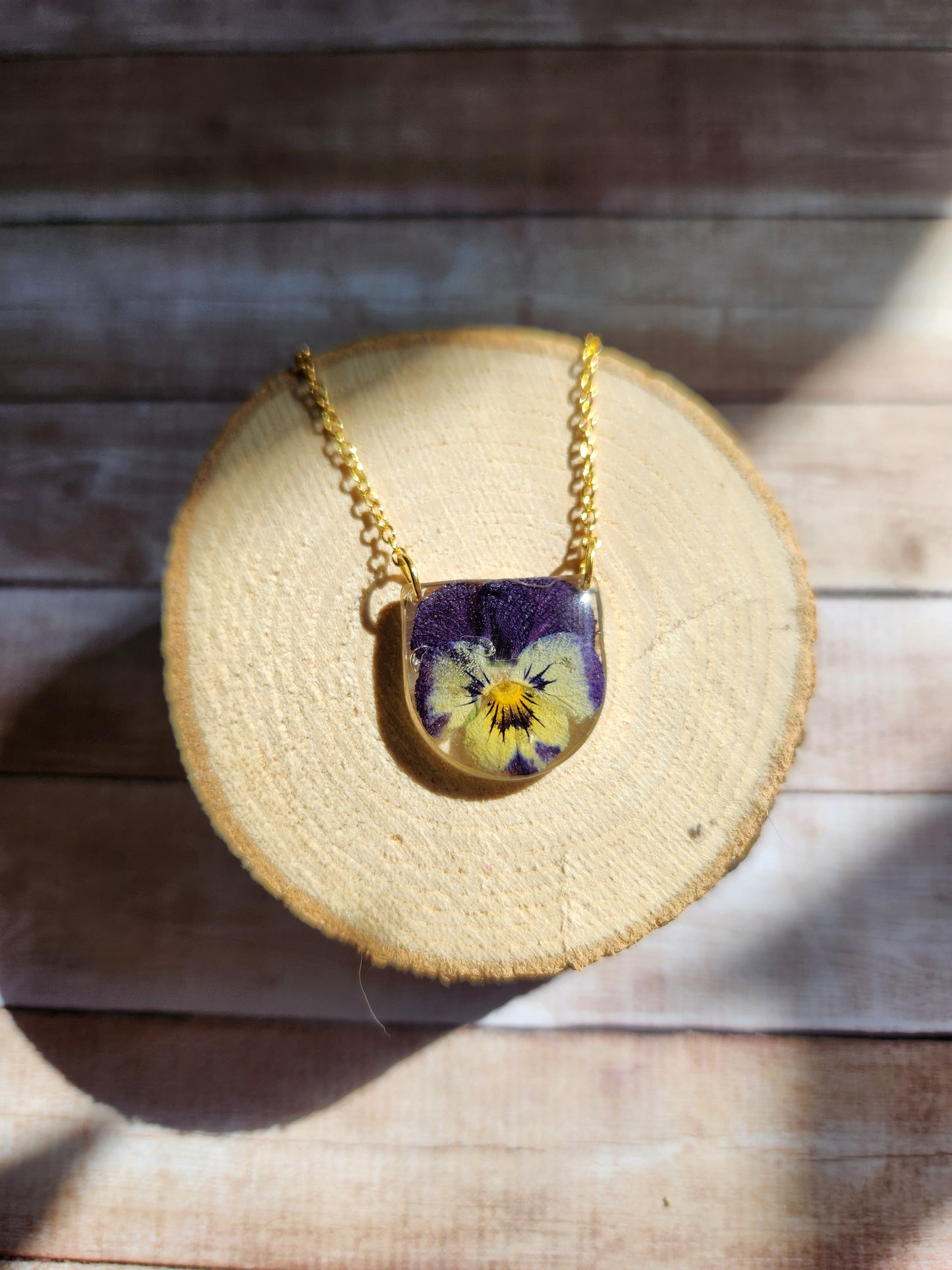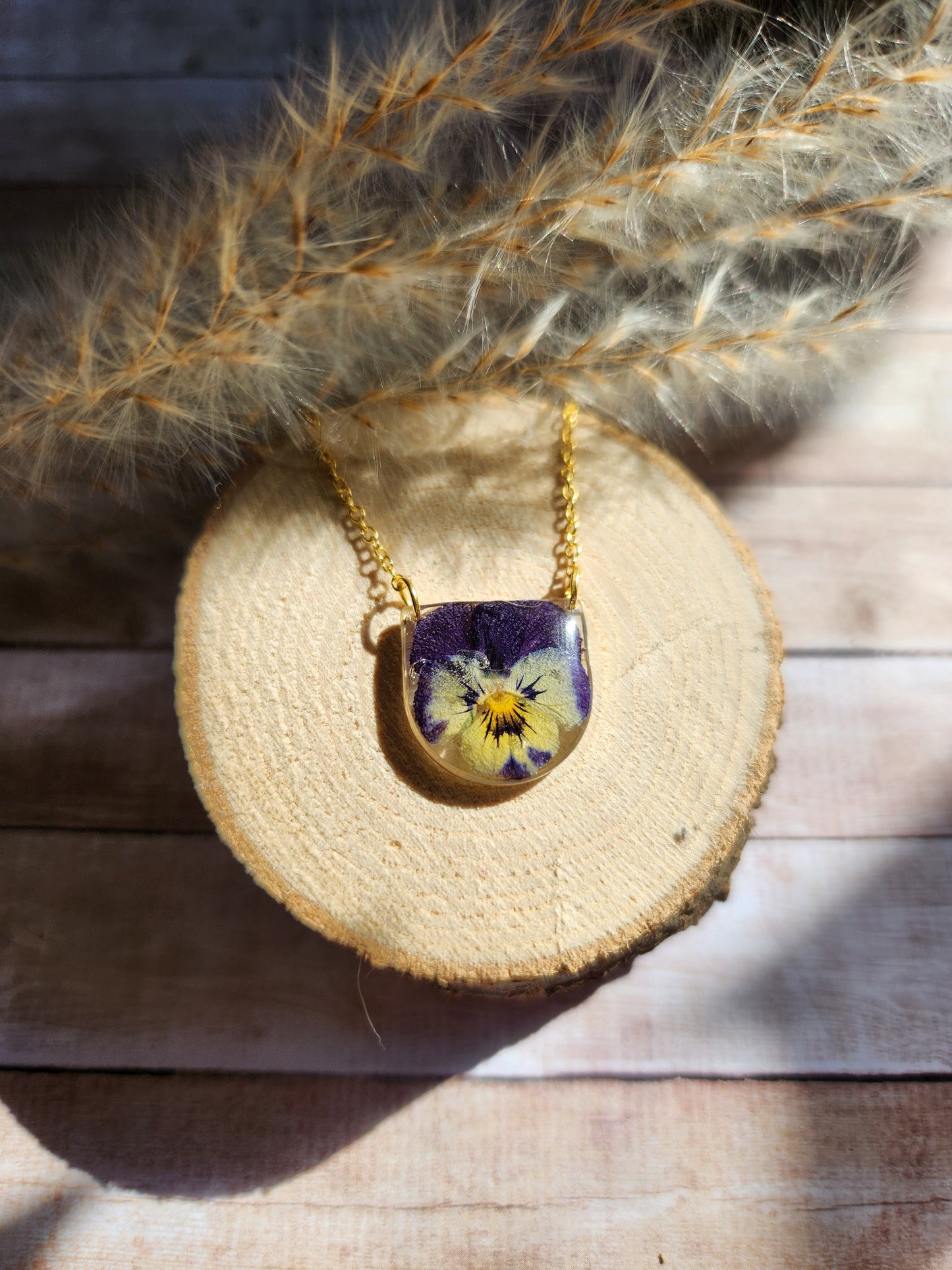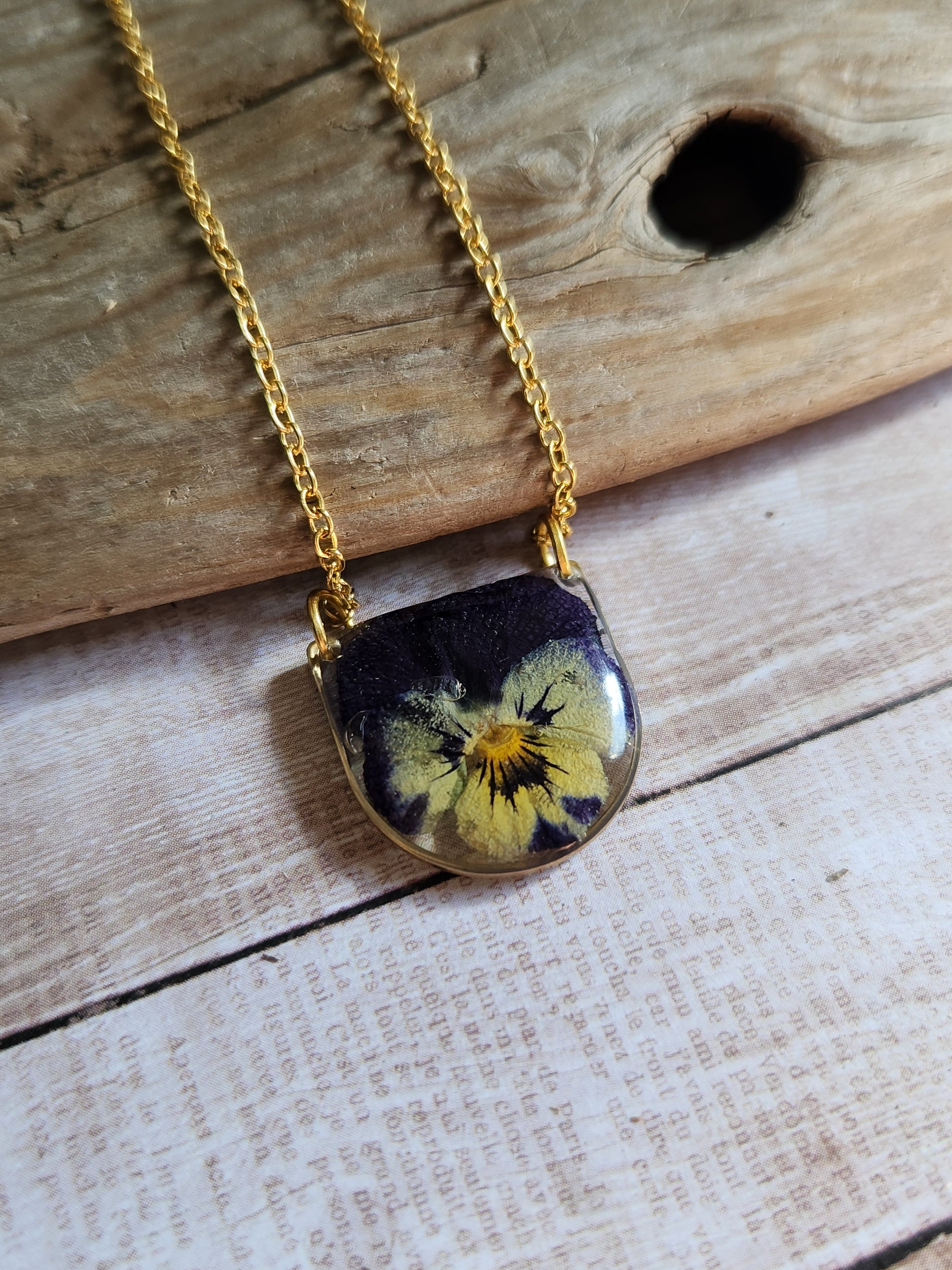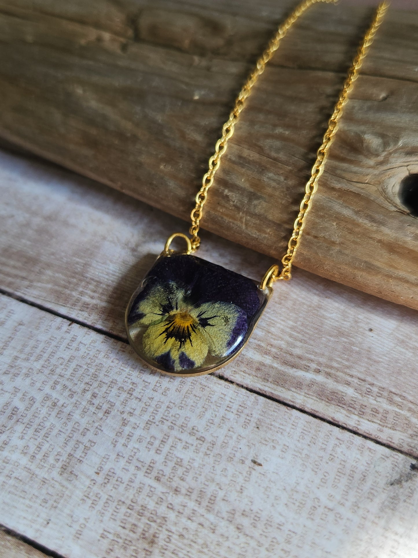 Pressed Pansy Flower Necklace
